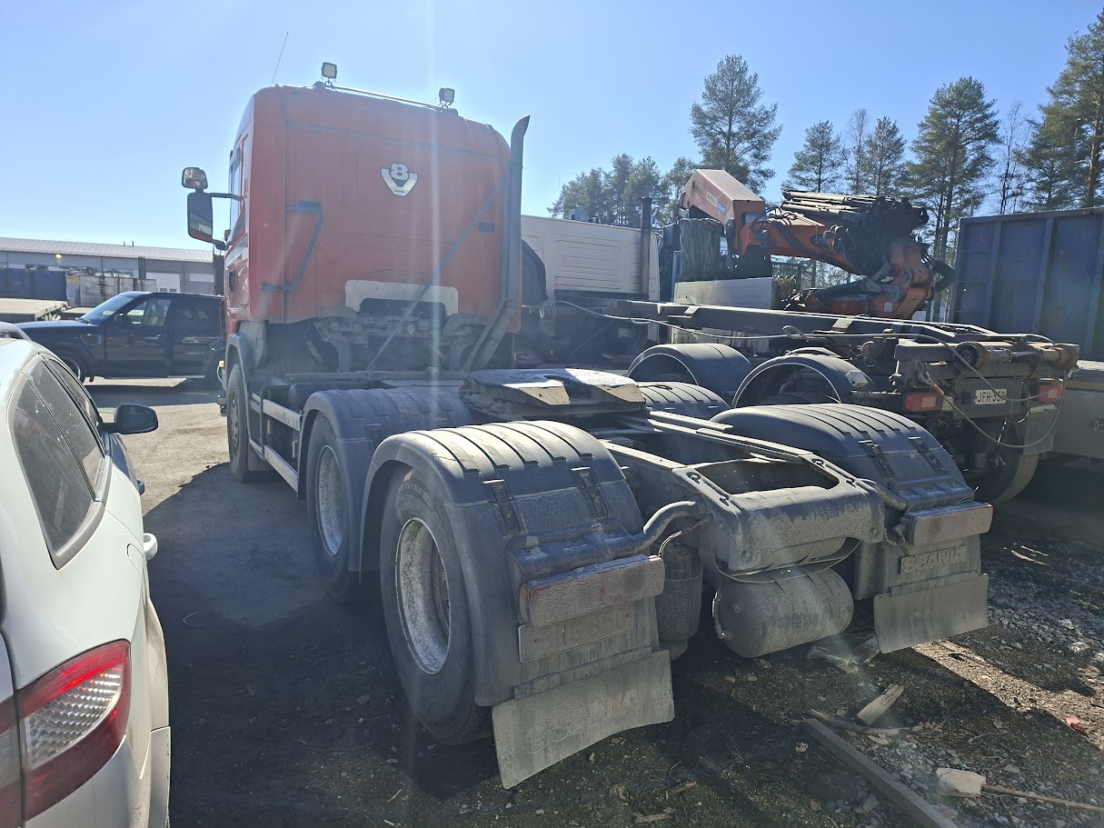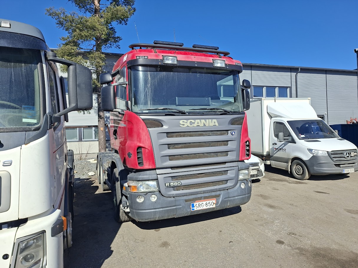 Scania R580 6×4 V8 vetopöytäauto uusilla renkailla ja juuri isosti huollettu