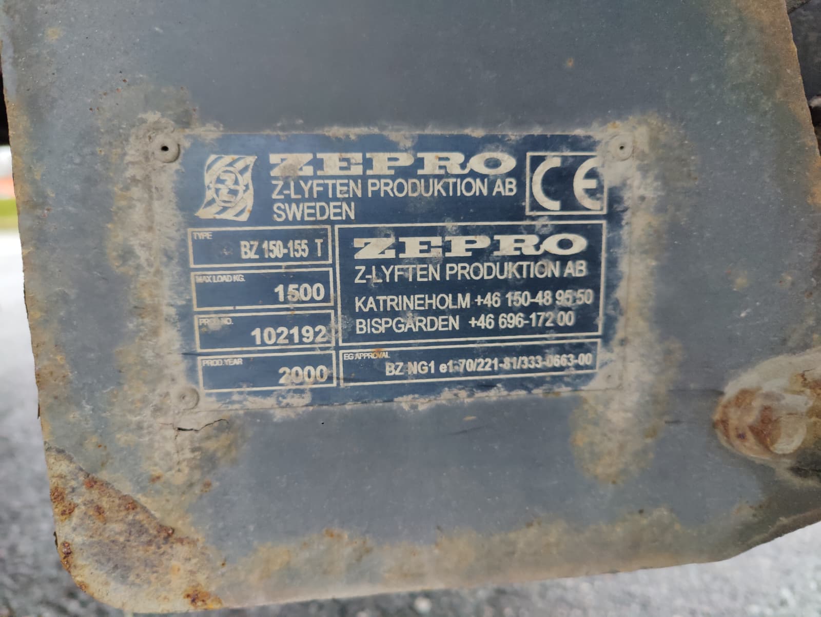 Takalaitanostin Zepro Bz 150-155 (maksimikuorma 1500 kg)