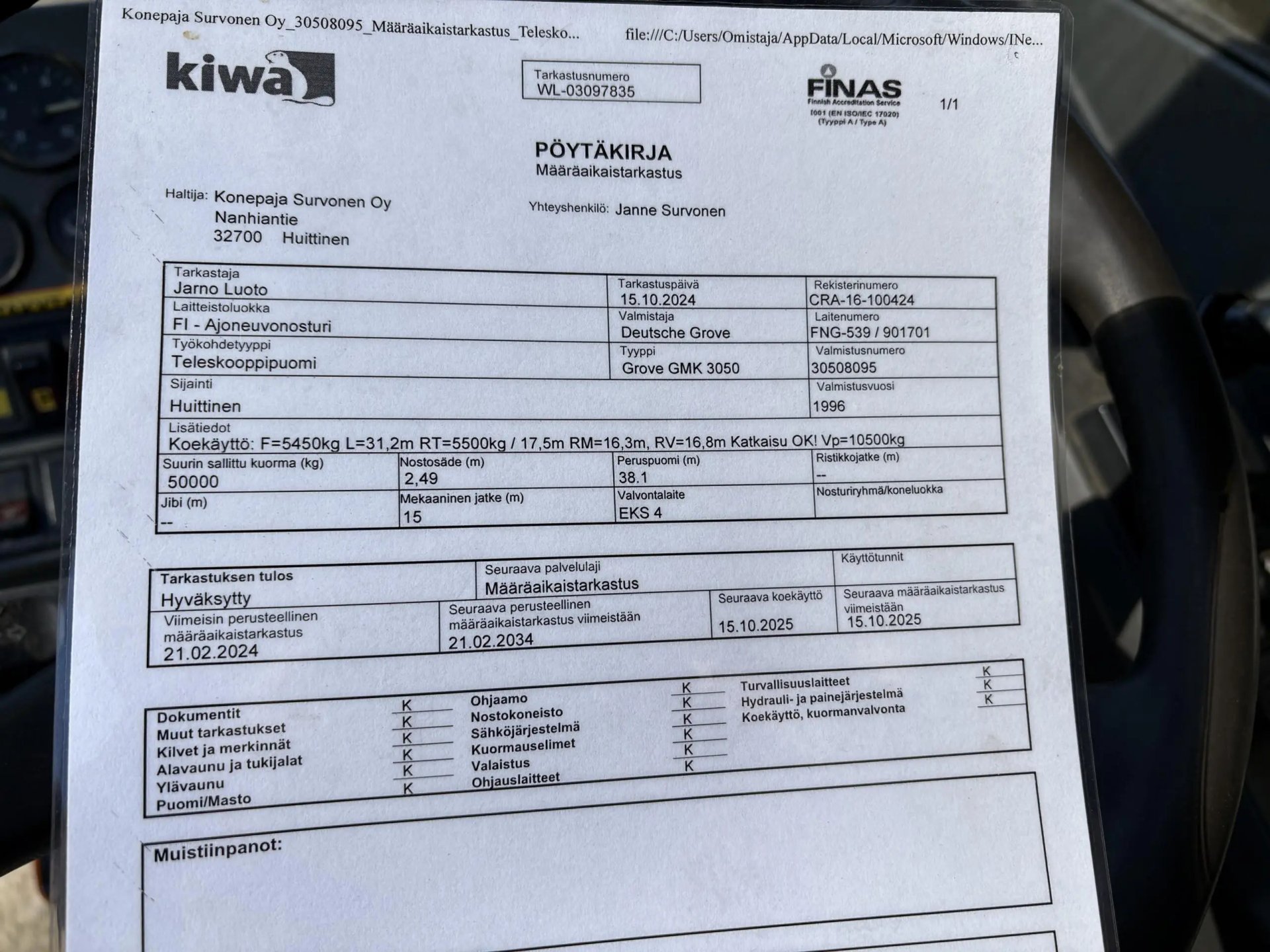 Nosturi vuositarkastettu 10/24