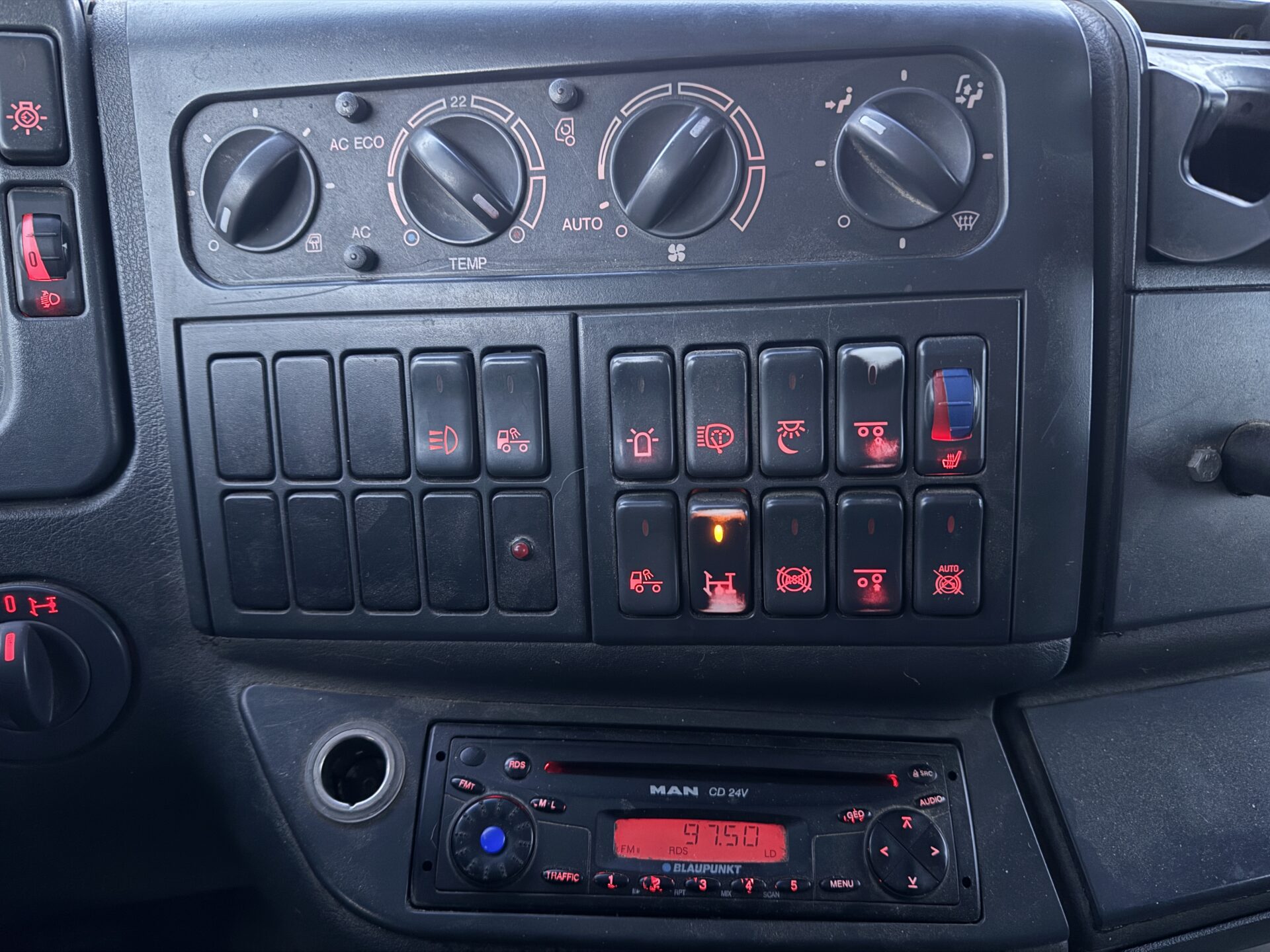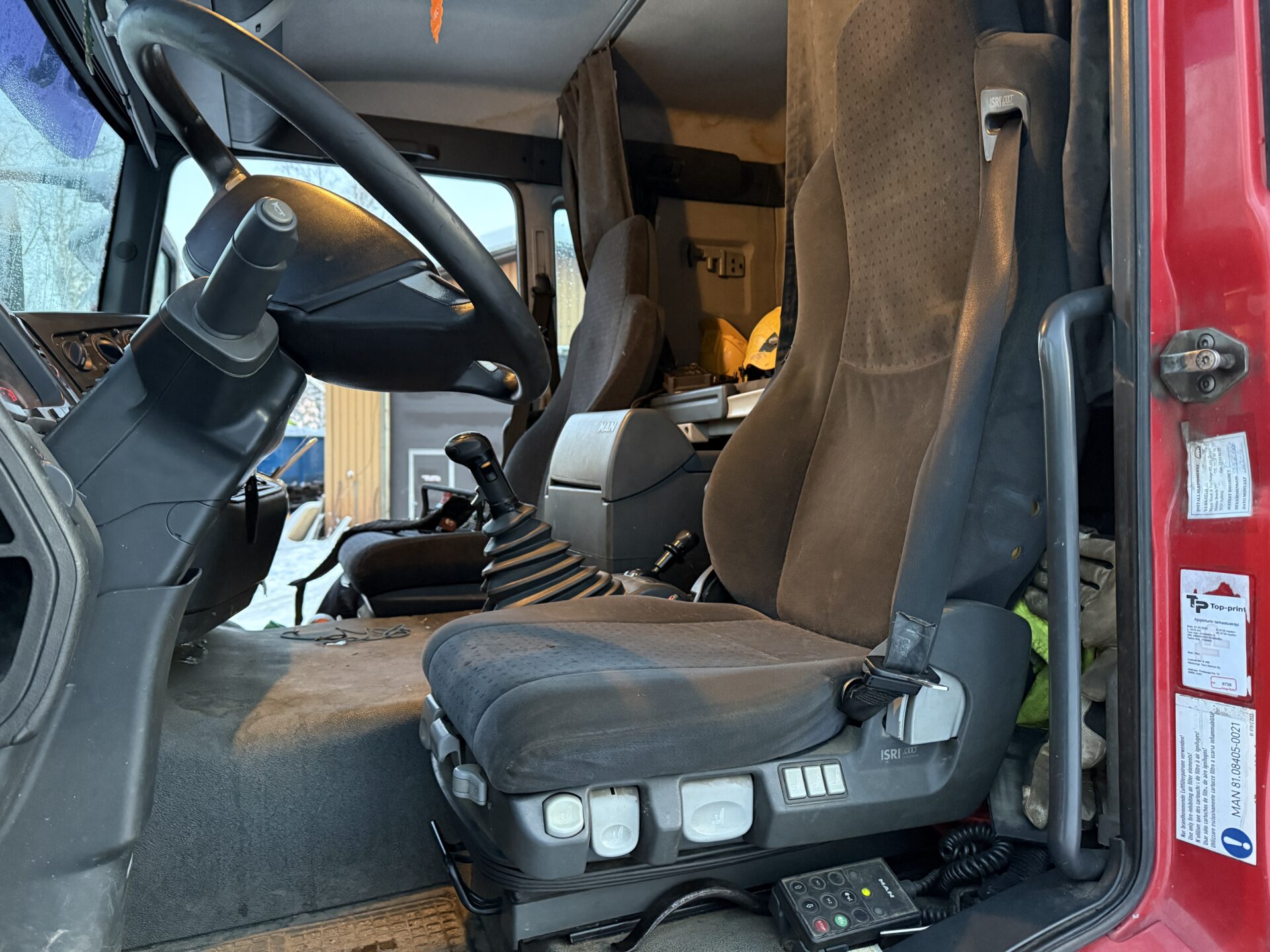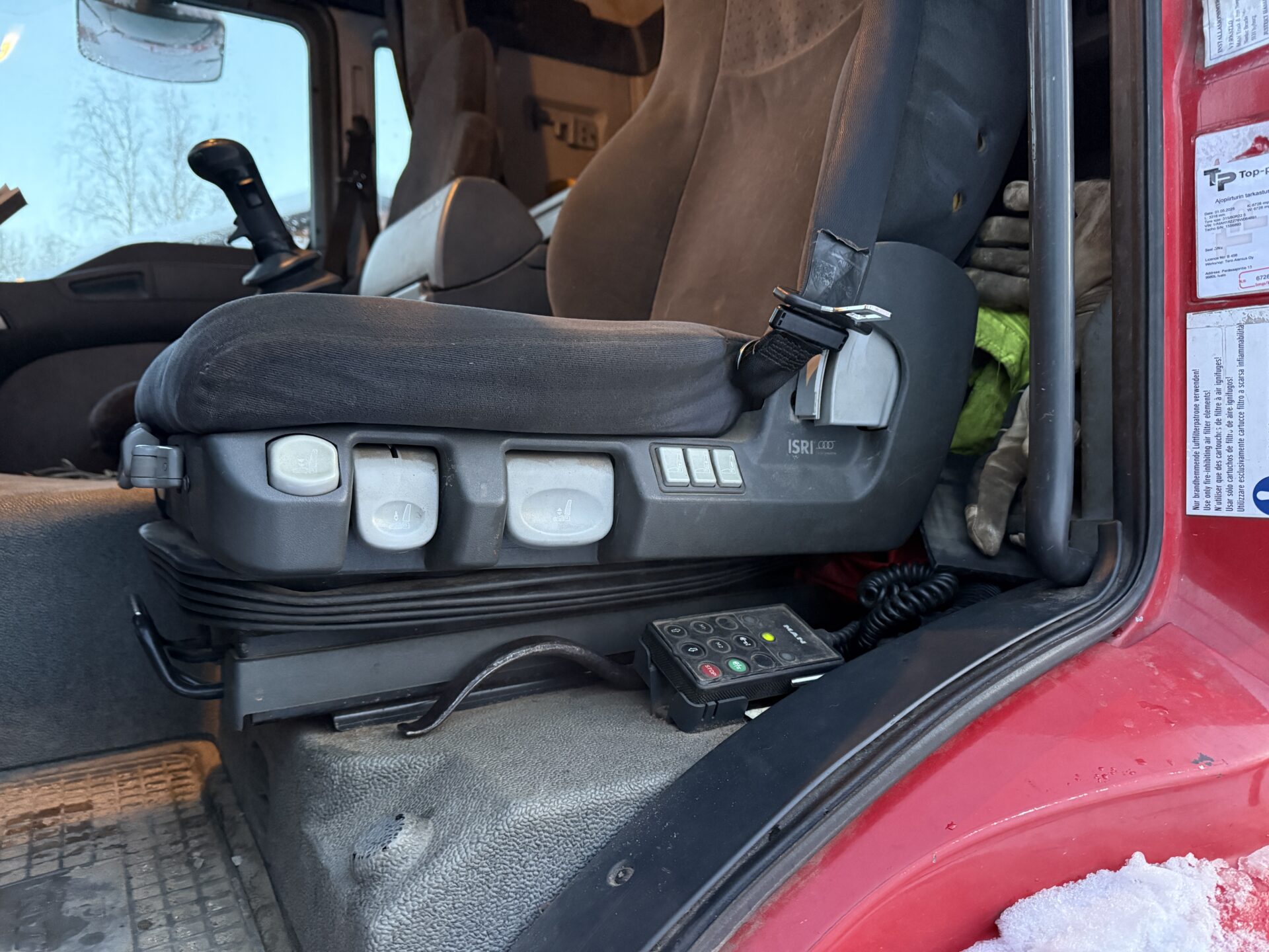 Auton sammutus ja käyttö nosturin ohjaimesta. Myös työvalojen käyttö.