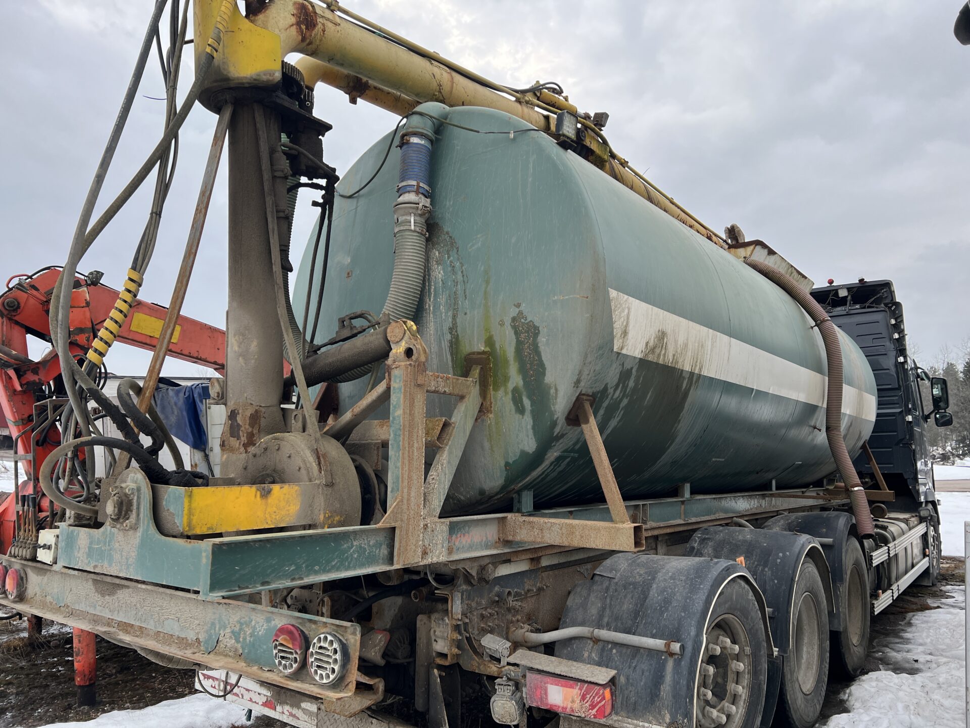 Lisähinnasta mukaan mahdollista ostaa lavoja (näkyy kuvissa) , lietteen siirtopytty (kuvissa kiinni) täytöllä ja tyhjäyksellä