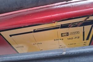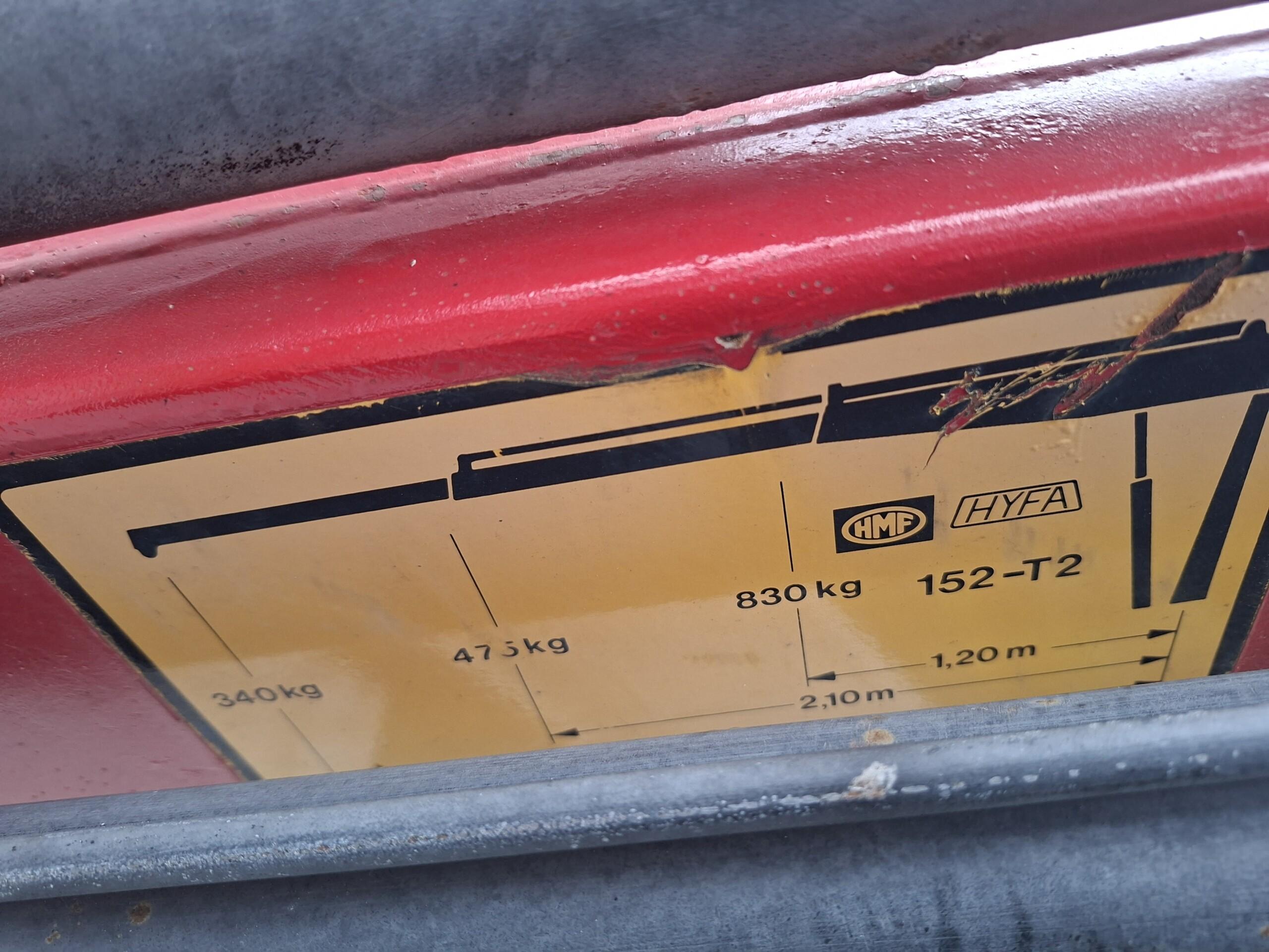 Nosturi (HMF 152 T 2) nostaa 830 kg - 340 kg riippuen miten pitkältä nostetaan