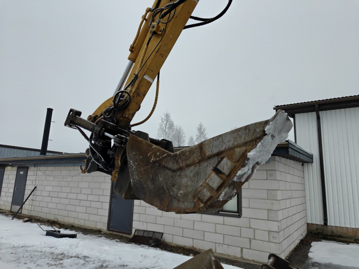 Kuvissa näkyvät kauhat ei sisälly kauppaan. Mukaan Pome-luiskakauha & kapea kauha.