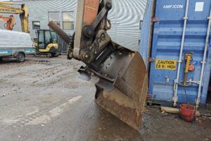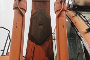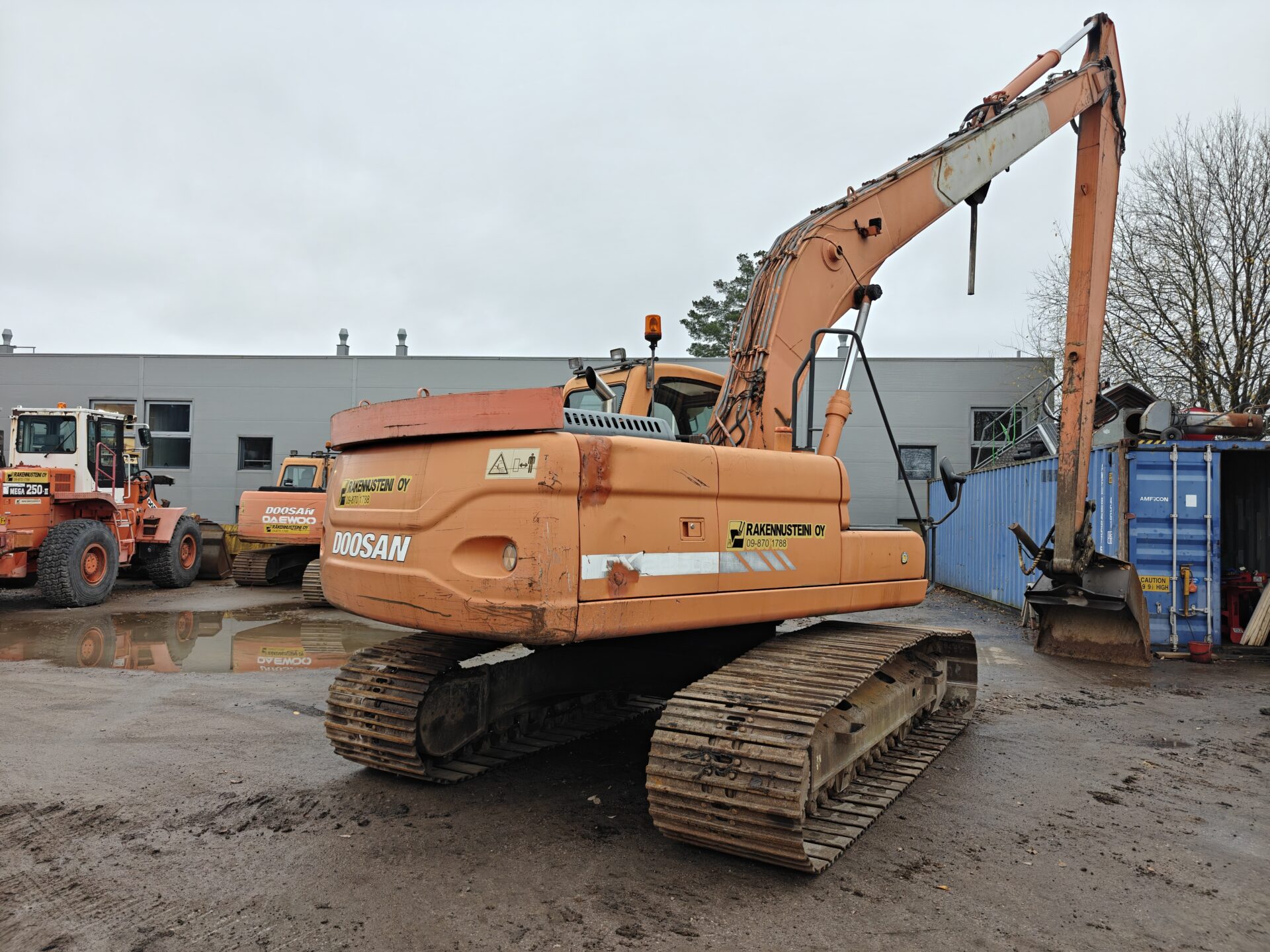 Siistissä kunnossa ja vähillä tunneilla ikäänsä nähden oleva Doosanin pitkäpuomi.