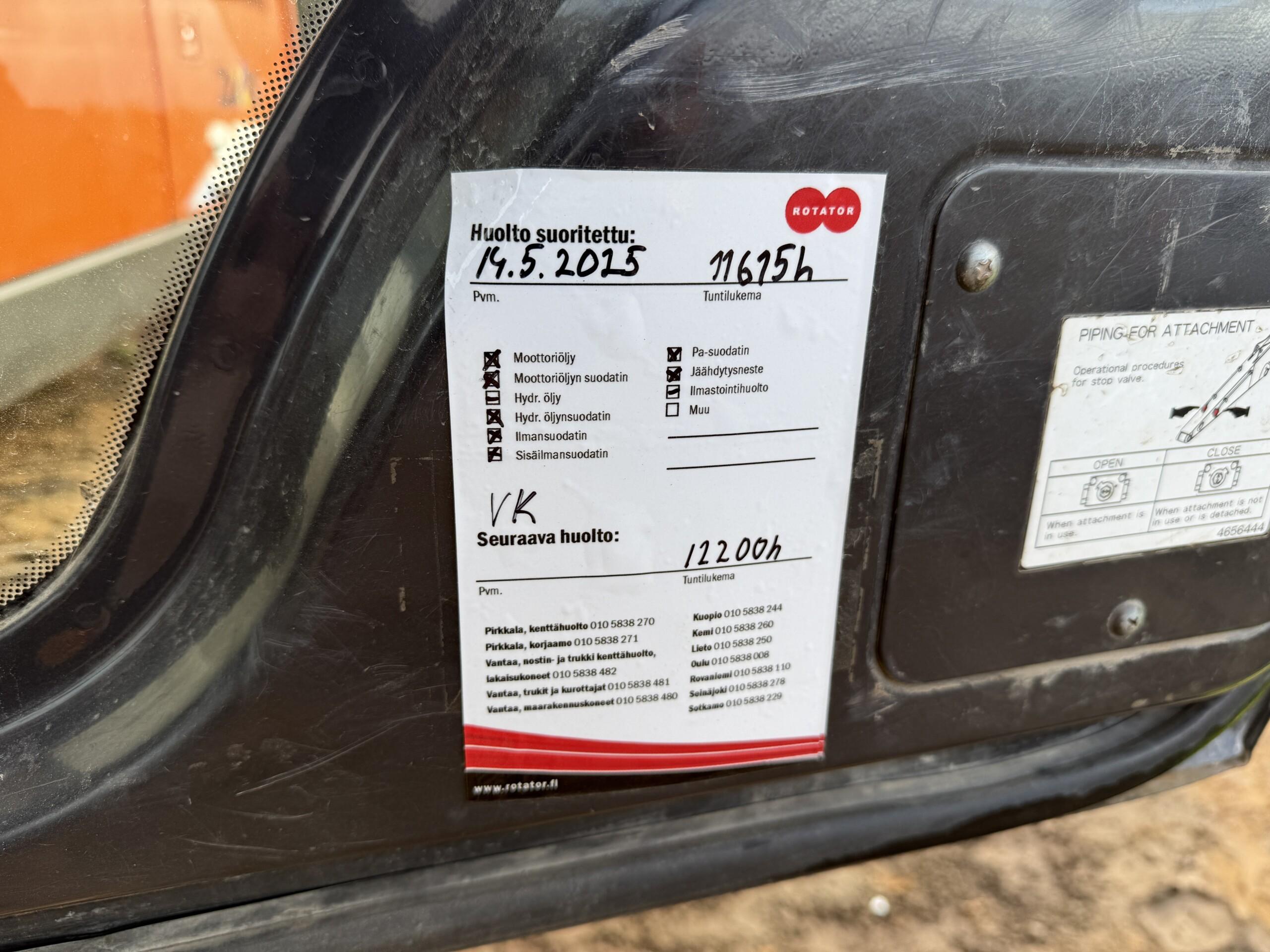 Kone on täysin varusteltu vaativiinkin projekteihin sekä huollettu ja korjattu esimerkillisesti mm. täydellinen moottoriremontti sekä uusi Rototilt R9 2020.