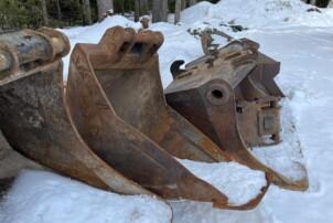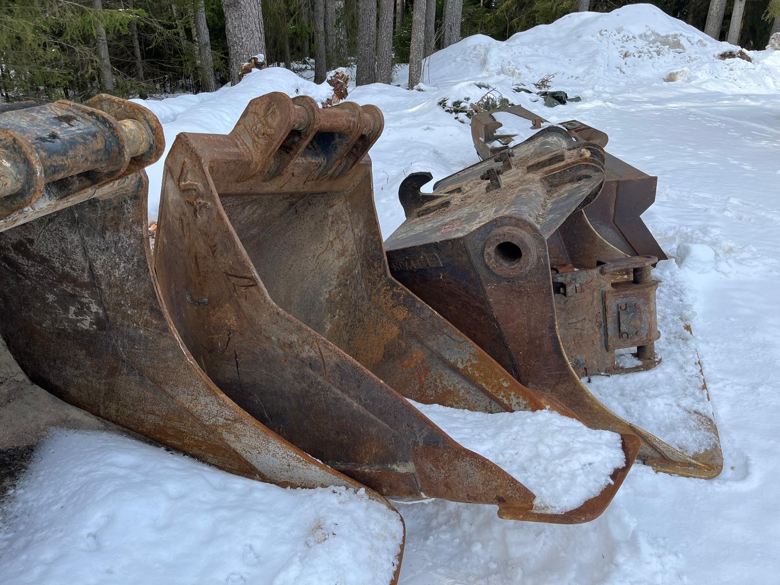 Mukaan luiskakauha. Mahdollisuus ostaa kauhoja lisähinnasta.