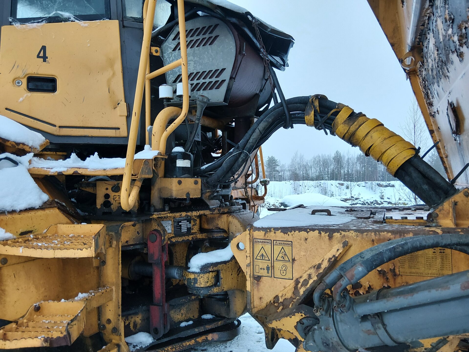 Lava kunnostettu 10 mm teräslevyillä. Ei ajettu hitsausten jälkeen.