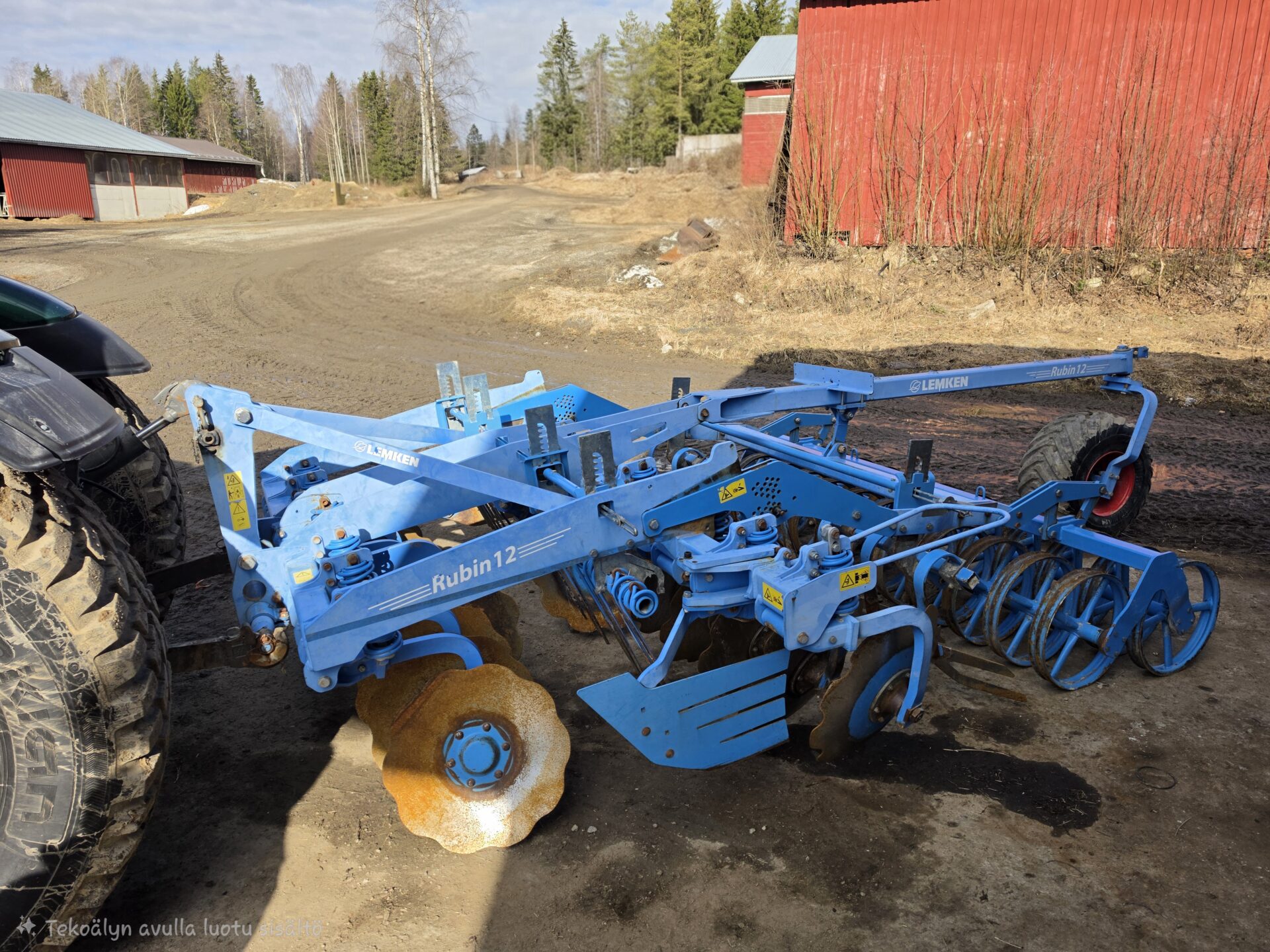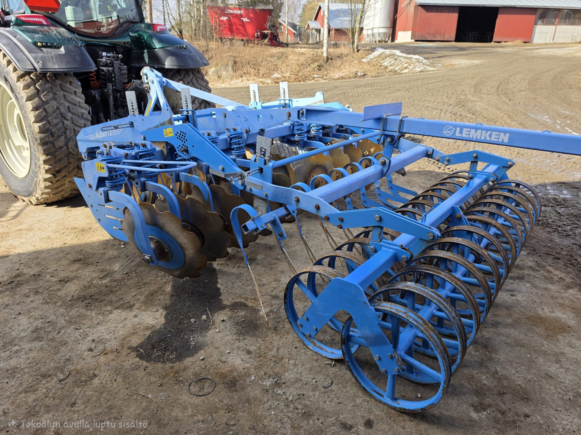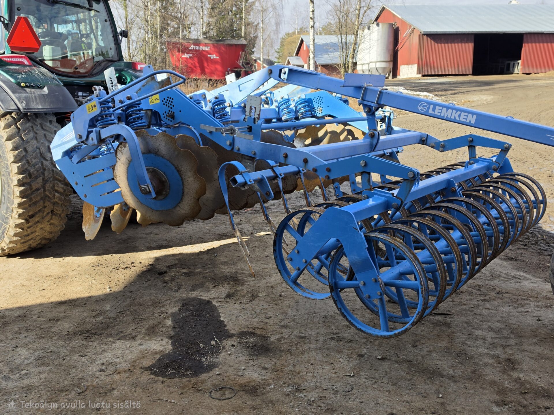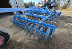 Todella hyväkuntoinen Lemken kaupan. Liki virheetön ja hyvällä pidolla ollut kone isommankin tilan tarpeisiin. Lautasten halkaisia edessä 65cm ja takarivissä 69cm. Yhdessä lautasesta puuttuu pieni palanen, mutta se ei haittaa käyttöä. Kuljetus pyörä helpottamassa siirtymistä tiellä. Kone luovutetaan uuteen kotiin joko ennen toukoja tai toukojen jälkeen, mutta ei kesken peltotöiden. Tilannetta voi tiedustella myyjältä.