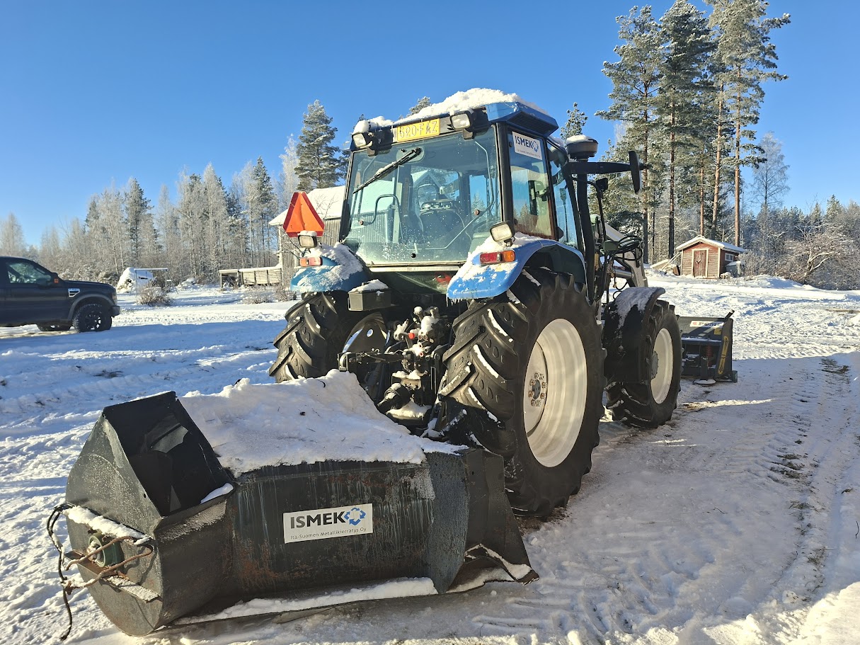Kauha ja trukkipiikit mukaan, kuvan lumivehkeet lisähinnasta